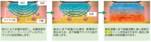 皮膚にマイクロ波を照射すると、細胞内に含まれる水分子が振動し、熱が発生します(誘電加熱)。